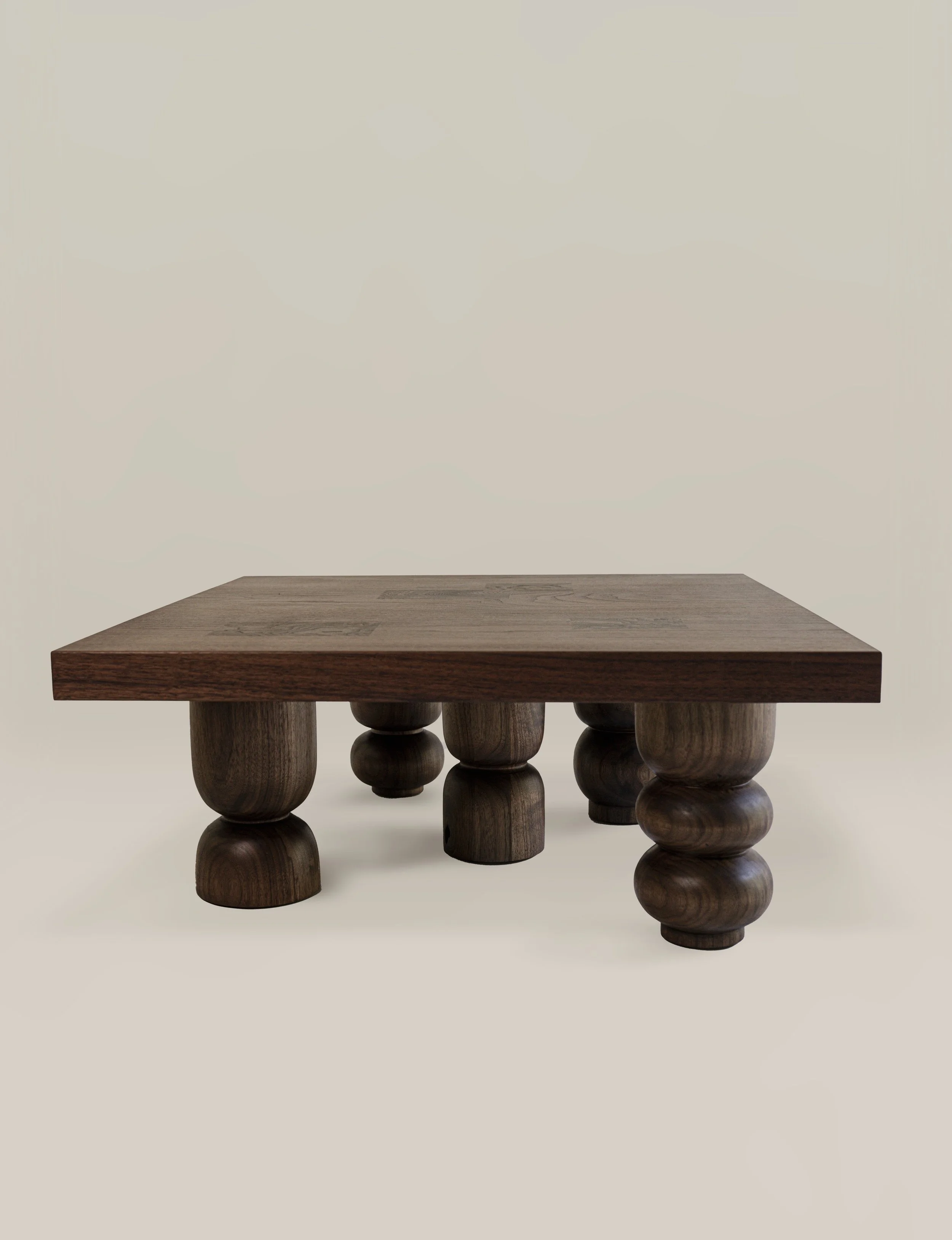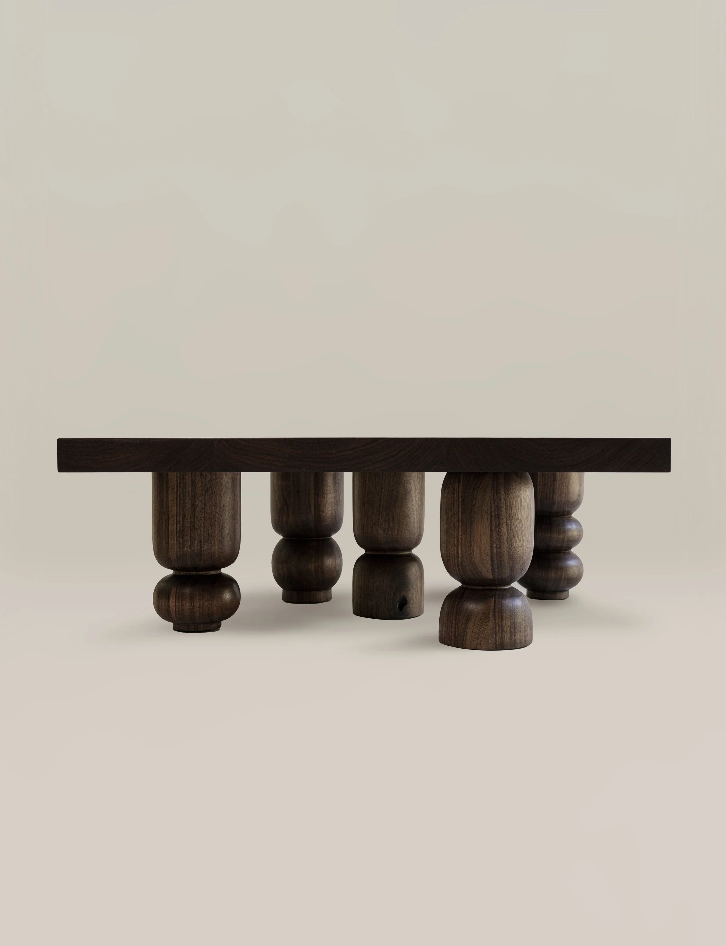 Designed for my first solo furniture show with Armadillo in Jan 2025. The Circe table is influenced by the ancient Korai of Greece - the beautiful women sculptures that acted as columns next to the Parthenon. I embraced randomness in the arrangement of the hand lathed legs - each one different.